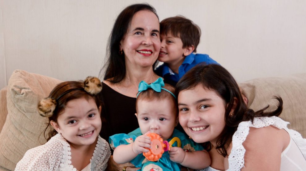 Lucília Nunes é só mimos e paparicos com os netinhos Luís Felipe, Manuella, a pequena e fofa Luiza e Isabella, que também não poupam carinhos para a vovó coruja todos os dias e noites – Foto: José Britto