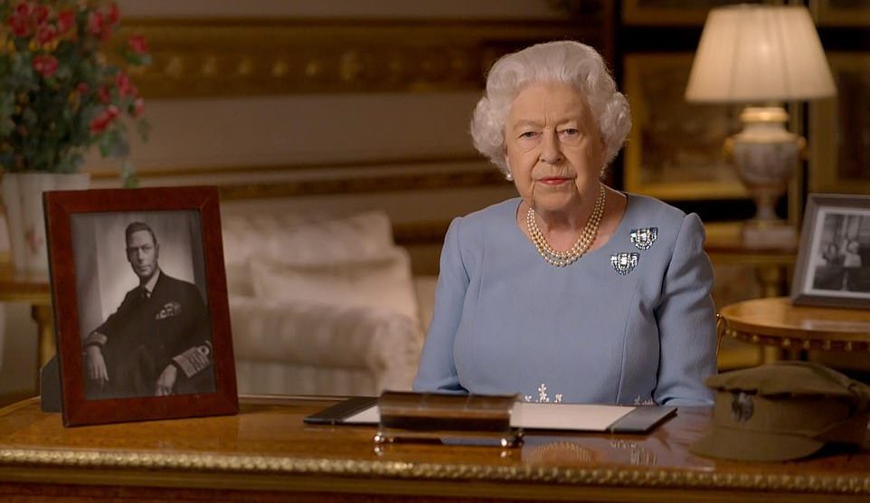 A rainha relembrou o início da 2ª Guerra, quando ainda era uma princesa e seu pai, George, era o monarca do Reino Unido. “As perspectivas pareciam sombrias, o fim distante, o resultado incerto”, disse. Entretanto, ela lembrou que a nação, na época, “manteve a fé de que a causa estava certa”. “Nunca desista, nunca se desespere” encorajou a rainha.