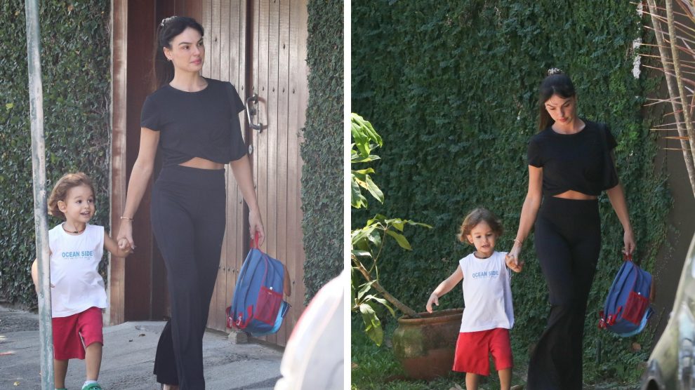 Após separação, Isis Valverde é vista levando seu filho à escola