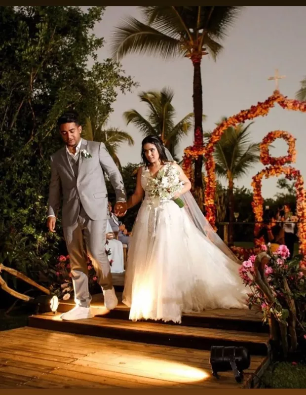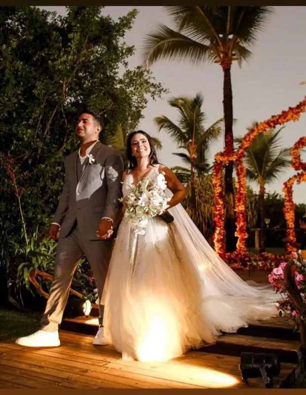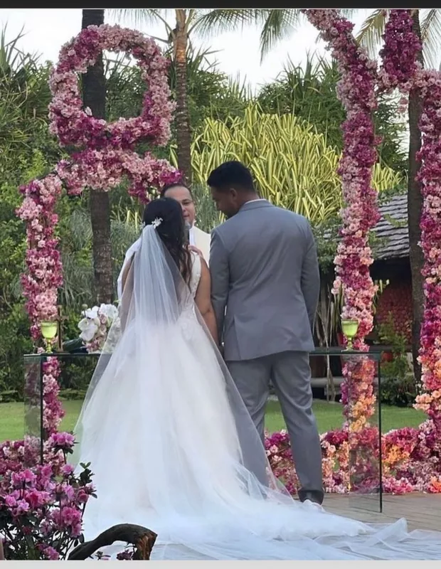Após 14 anos de união, Juliano se casou hoje (25) com Mohana, em Trancoso, na Bahia. O casal já tem duas filhas, Maria Antônia, de 2anos e 8 meses e Maria Clara, nascida em 2021.