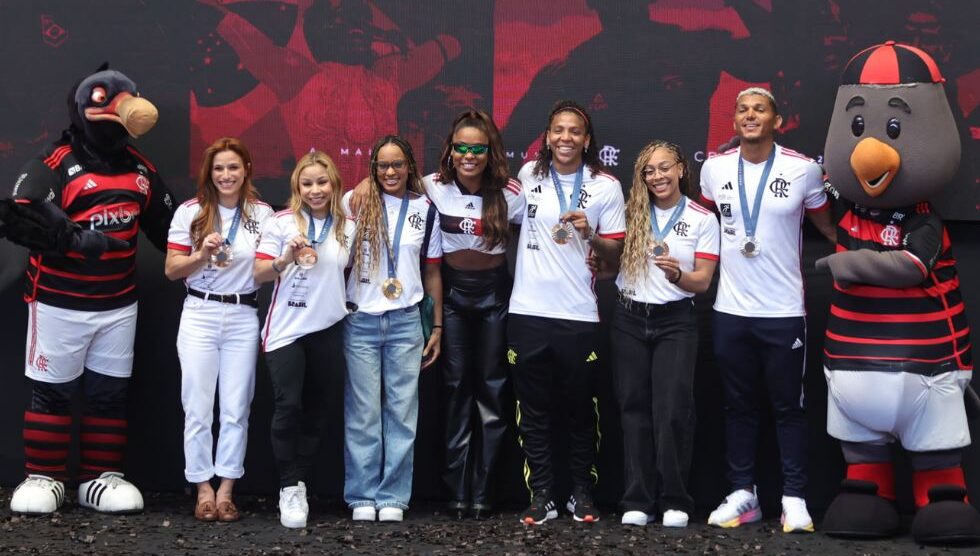 Atletas recém-chegados de Paris foram homenageados pelo Flamengo, no Ginásio Hélio Maurício, na Gávea. O evento foi um sucesso, com torcedores e atletas lotando o local. Entre os destaques estavam as ginastas Rebeca Andrade, Flávia Saraiva, Jade Barbosa e Lorrane Oliveira, a judoca Rafaela Silva (bronze por equipes) e o canoísta Isaquias Queiroz.