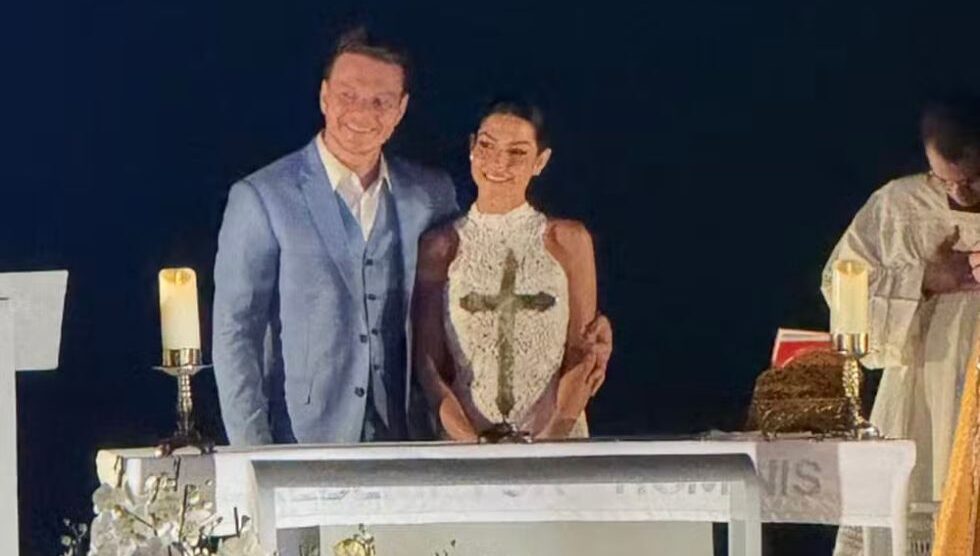Michel Teló e Thais Fersoza renovaram os votos de casamento na última segunda-feira (14), data em que o cantor e a atriz completam 10 anos de união. A cerimônia foi realizada aos pés do Cristo Redentor, no Rio de Janeiro. Os filhos do casal, Melinda, de 8 anos, e Teodoro, de 7, foram os responsáveis por levarem as alianças dos papais.