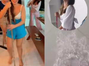 Rafa Kalimann, que visitou a vencedora do BBB 21, não segurou o riso ao ver o chão da casa todo cheio de água